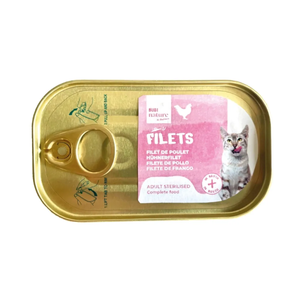 Bubimex Bubi Nature Filets Lata de Pollo en Caldo para Gatos Esterilizados