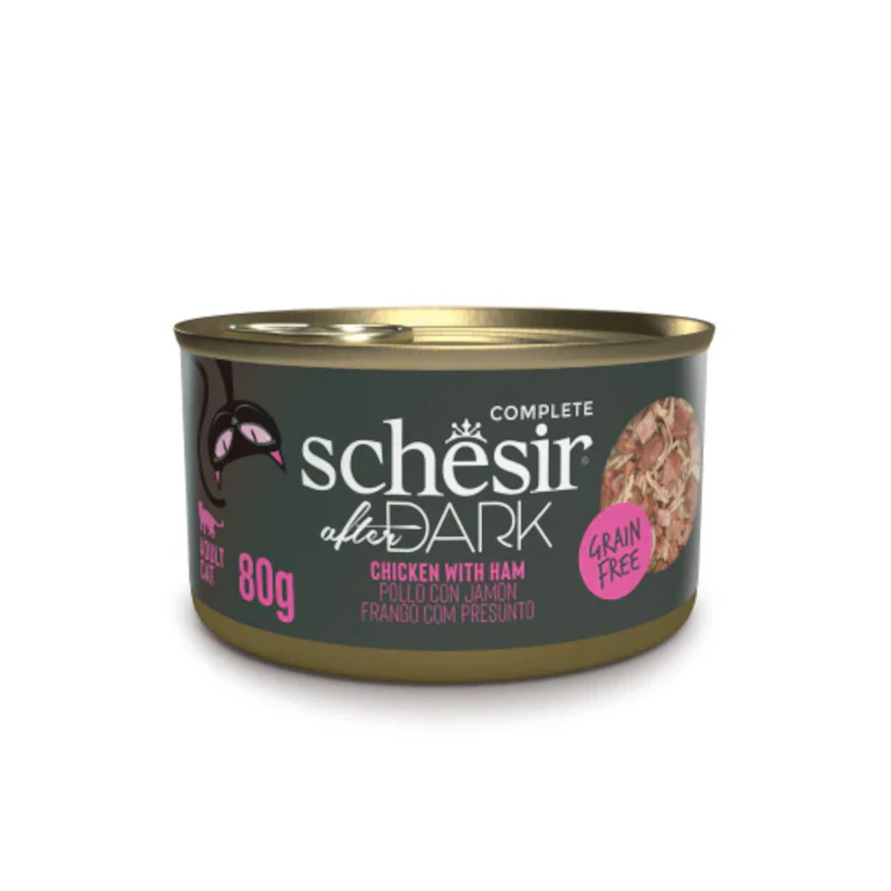 Schesir After Dark Lata de Pollo con Jamón en Caldo 80g para gatos adultos: