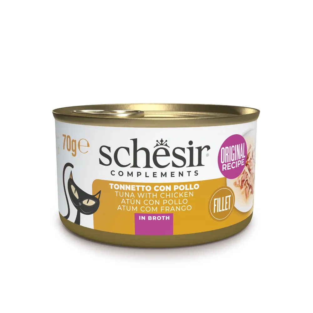 Schesir Lata de Atún con Pollo en Caldo – Alimento Húmedo Complementario para Gatos