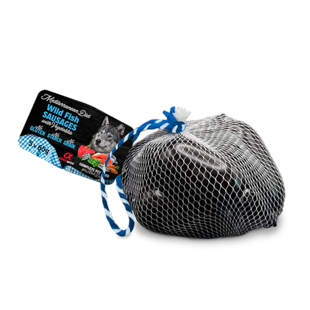 Alpha Spirit Mediterranean Diet Wild Fish Sausages with Vegetables – Alimento húmedo completo para perros (5x65g)
