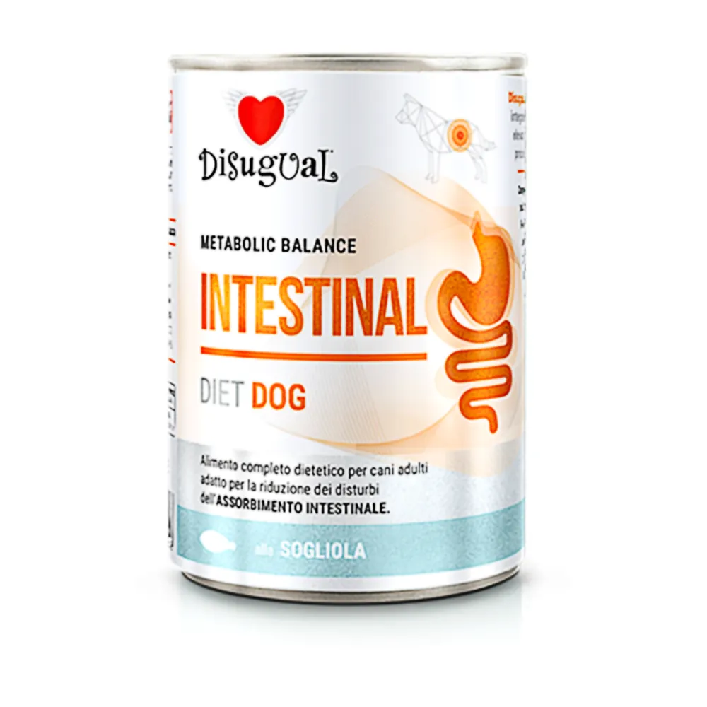 Disugual Metabolic Balance Intestinal Diet Dog Lenguado es un alimento dietético completo para perros, formulado específicamente para la reducción de los trastornos de la absorción intestinal.