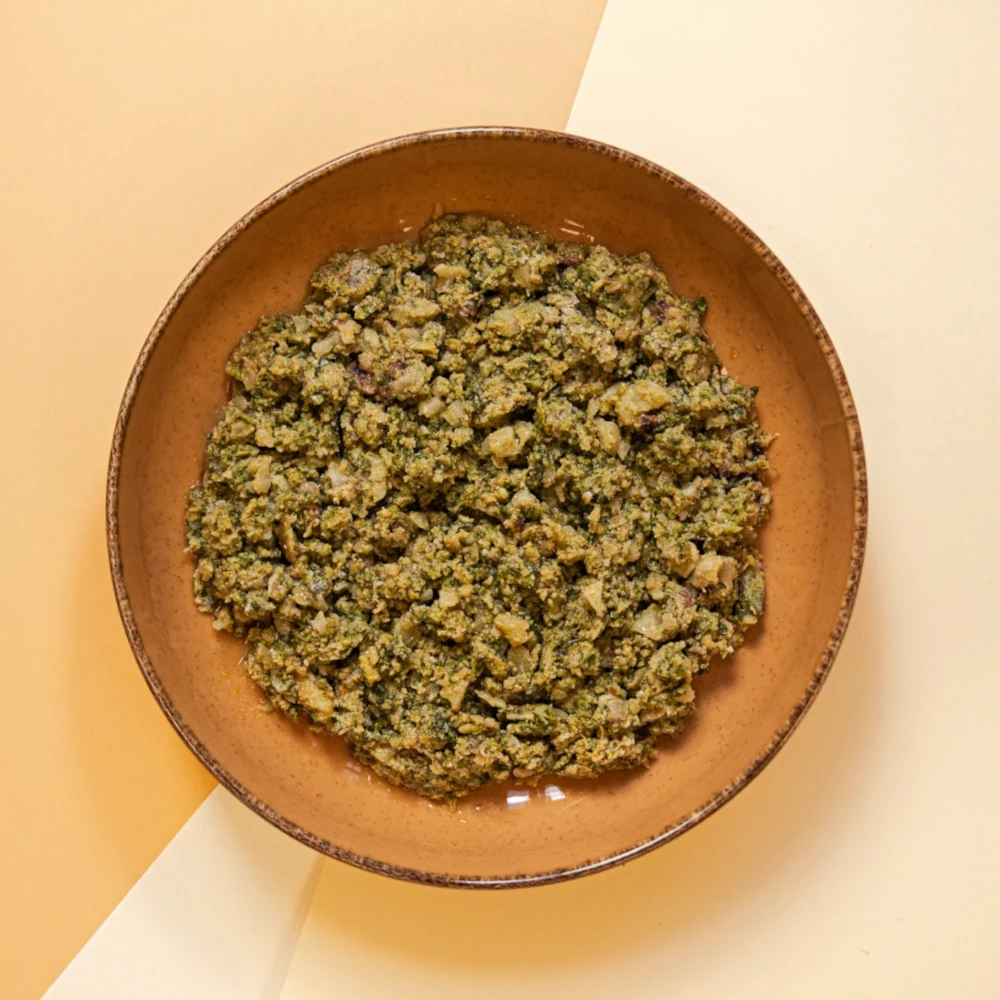 Con verduras como espinacas, chirivía y patata, este plato proporciona fibra, vitaminas y antioxidantes que cuidan el bienestar general de tu perro. Todo cocinado a baja temperatura para conservar al máximo los nutrientes y el sabor.