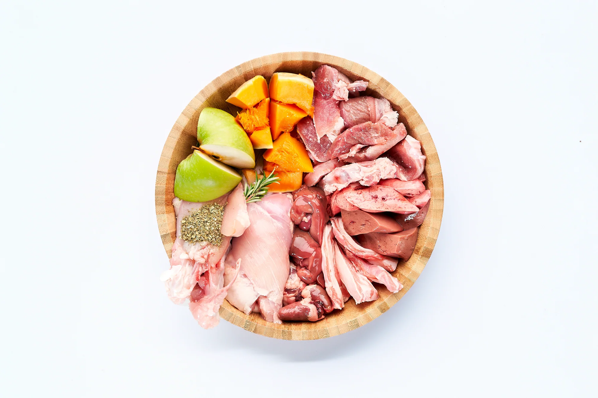 Una receta equilibrada, energética y muy sabrosa. Este menú BARF combina dos proteínas animales de alta calidad: el cordero, con un perfil graso funcional y rico sabor; y el pollo, más ligero y digestivo. Juntas forman una fórmula ideal para perros activos o con mayores necesidades calóricas.